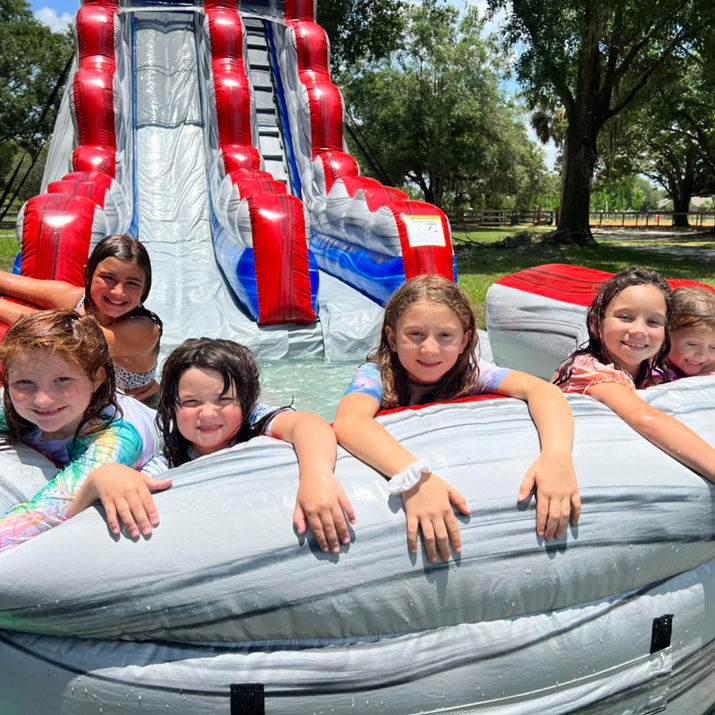 Fun-filled days of horseback riding, outdoor games, dual water slide, arts & crafts, horse anatomy workshop, trail rides & obstacle courses, and an ice cream sundae bar. Don't miss out on all the fun!